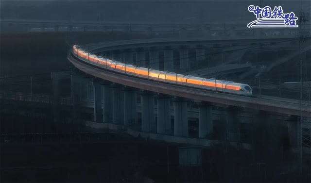 复兴号动车组列车从动车库牵引桥驶出。李国贤 摄