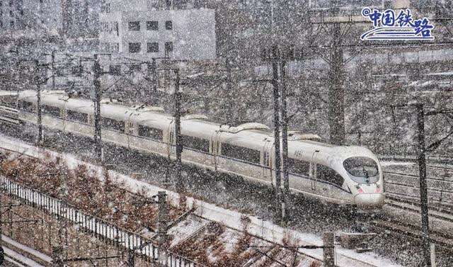 在雪中飞驰的复兴号动车组列车。吴向俊 摄