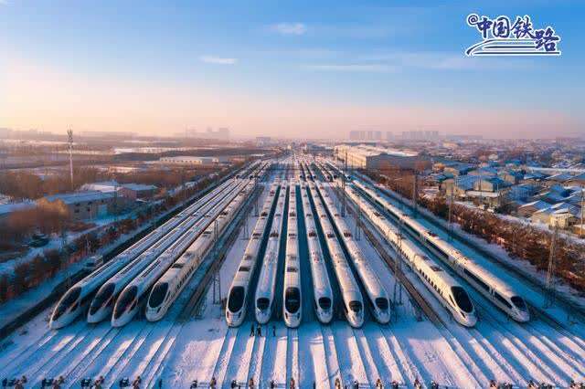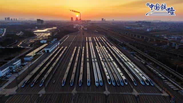 日出时分,石家庄动车所整装待发的动车组。徐刚 摄