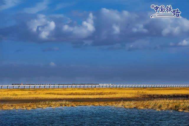 一列中欧班列驶过台特玛湖特大桥。杨新光 摄