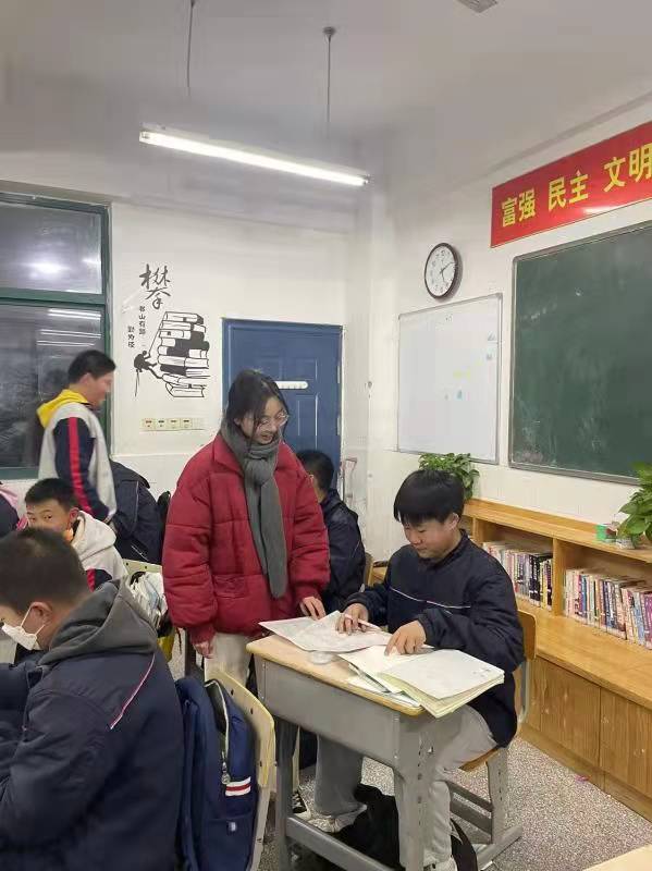 外国语学院的大学生志愿者还协助中学教师组织学生开展组团式学科个性化辅导,利用问答、对话等多种方式提高同学们对英语学习的兴趣。