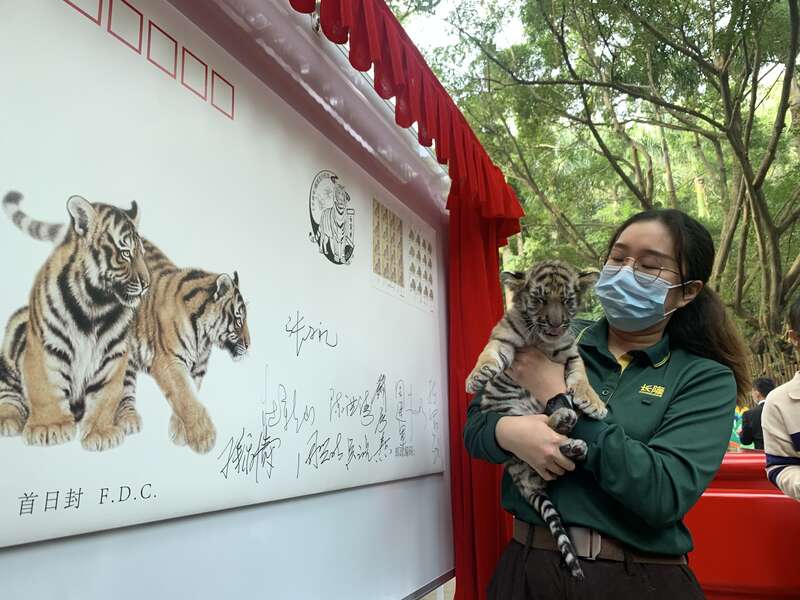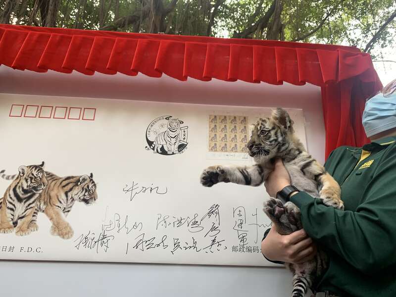 中国青年报客户端广州1月5日电(中青报·中青网记者 林洁 文并摄)今天,《壬寅年》特种邮票在广州首发。在长隆野生动物世界——百虎山,新生的孟加拉虎宝宝与游客见面,与本次邮票发行一样,寓意着虎虎生威的好彩头。
