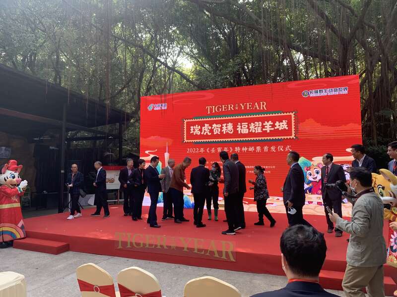2022年1月5日至2月20日,广州邮政还在长隆野生动物世界同步举办“‘瑞虎贺穗’广州2022世界虎邮票展览暨周啸虎作品展”。