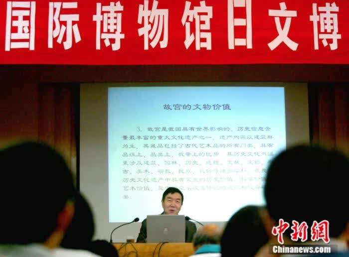 2006年5月,郑欣淼先生在北京古代建筑博物馆做题为“故宫与青年学子”的专题演讲。中新社记者 张勤 摄