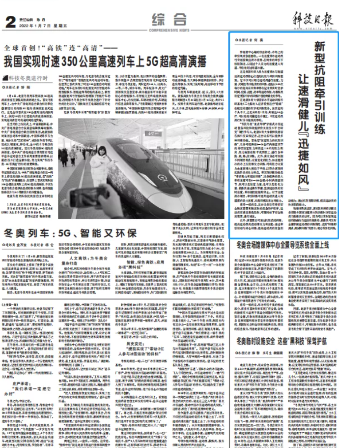 寒冬至,冰雪来。北京冬奥会的脚步日益临近,北京体育大学备战和服务保障冬奥会的各项工作正在稳步推进着。2022年1月7日,《科技日报》刊发文章《新型抗阻牵引训练让速滑健儿“迅捷如风”》 ,现原文转发。