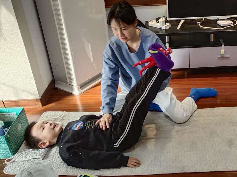 黄力正在陪着儿子锻炼。(照片由受访者提供)