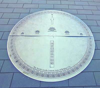 景山万春亭北侧的中轴线标识 王紫祺摄/光明图片