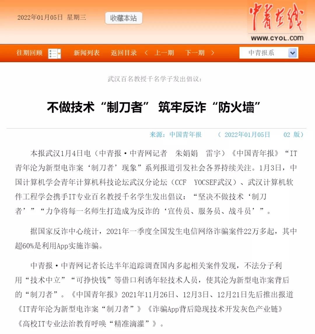 武汉计算机软件工程学会理事长、武汉大学计算机学院李兵教授认为,数字社会、信息社会到来,叠加疫情影响,民众对移动网络依赖强烈,亟须加强相关诈骗行为源头治理,引导IT师生不做虚假App的技术助攻,发挥专业力量参与反诈,对于构建清朗网络空间、护航网络安全意义深远。