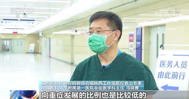 国务院联防联控机制综合组陕西工作组医疗救治专家 中国医科大学附属第一医院重症医学科主任 马晓春:从整体的临床表现上来看,仍然是以呼吸系统表现为主,比如说咳嗽,个别病人有一些气短。全身系统的表达,这次感觉好像就是头疼的病人相对多一点。和以往比较,比如腹泻的病人,比如说嗅觉和味觉丧失的病人,相对比例是少的。发烧的病人总体上感觉和以往比,比例也相对少一点。我们总体病人的救治从效果上来看是好的。大量的病人实际在轻症左右就停住了。有一些是普通的,在我们联合干预下,向重症发展的比例也是比较低的。