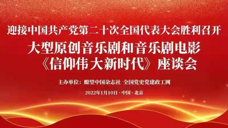 中国青年报客户端1月10日电(中青在线见习记者 聂思媛)今天上午,由瞭望中国杂志社、全国党史党建政工网主办的大型原创音乐剧、音乐剧电影《信仰伟大新时代》剧本座谈会在京举行。
