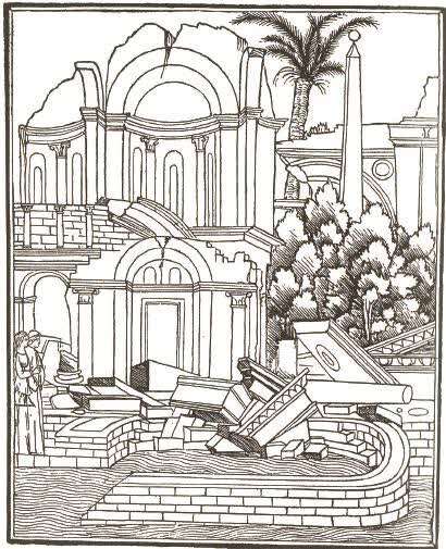 意大利文艺复兴建筑师科隆纳的浪漫小说《波利菲洛之寻爱绮梦》(1499)对17世纪的法国和意大利的宫殿及园林建筑产生了重要的影响。书中的文字描述和插图成为建筑生成的启示。小说讲述了主人公波利菲洛的一段游历梦境,他在梦境中描述所遇见的宫殿、神庙和剧场。书中附有115幅木刻版画,描绘了神庙、金字塔、方尖碑、人物、园林、水池、水井、神庙室内、花瓶、花饰等,这本小说对以后的文学、艺术和建筑产生了重要的影响。意大利建筑师、画家,文艺复兴盛期建筑的代表人物之一布拉曼特的建筑观念,受到这部小说的影响,他设计的圣彼得大教堂的观景楼所表现的古罗马风格,借鉴了书中的描述,他的乌托邦思想也从《寻爱绮梦》的神秘幻想中得到启示。