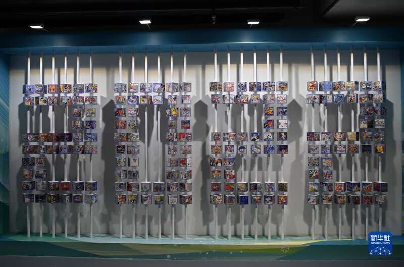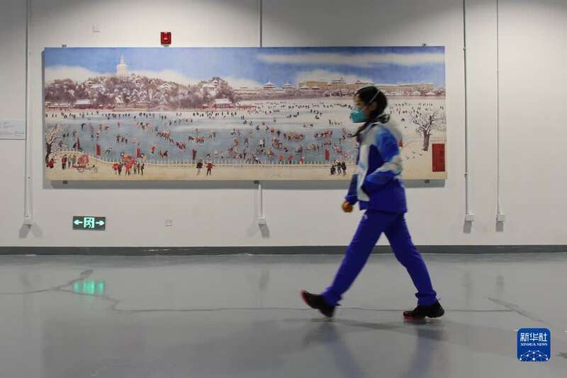 1月10日,一名志愿者从主媒体中心内一幅装饰画前走过。新华社记者 徐子鉴 摄