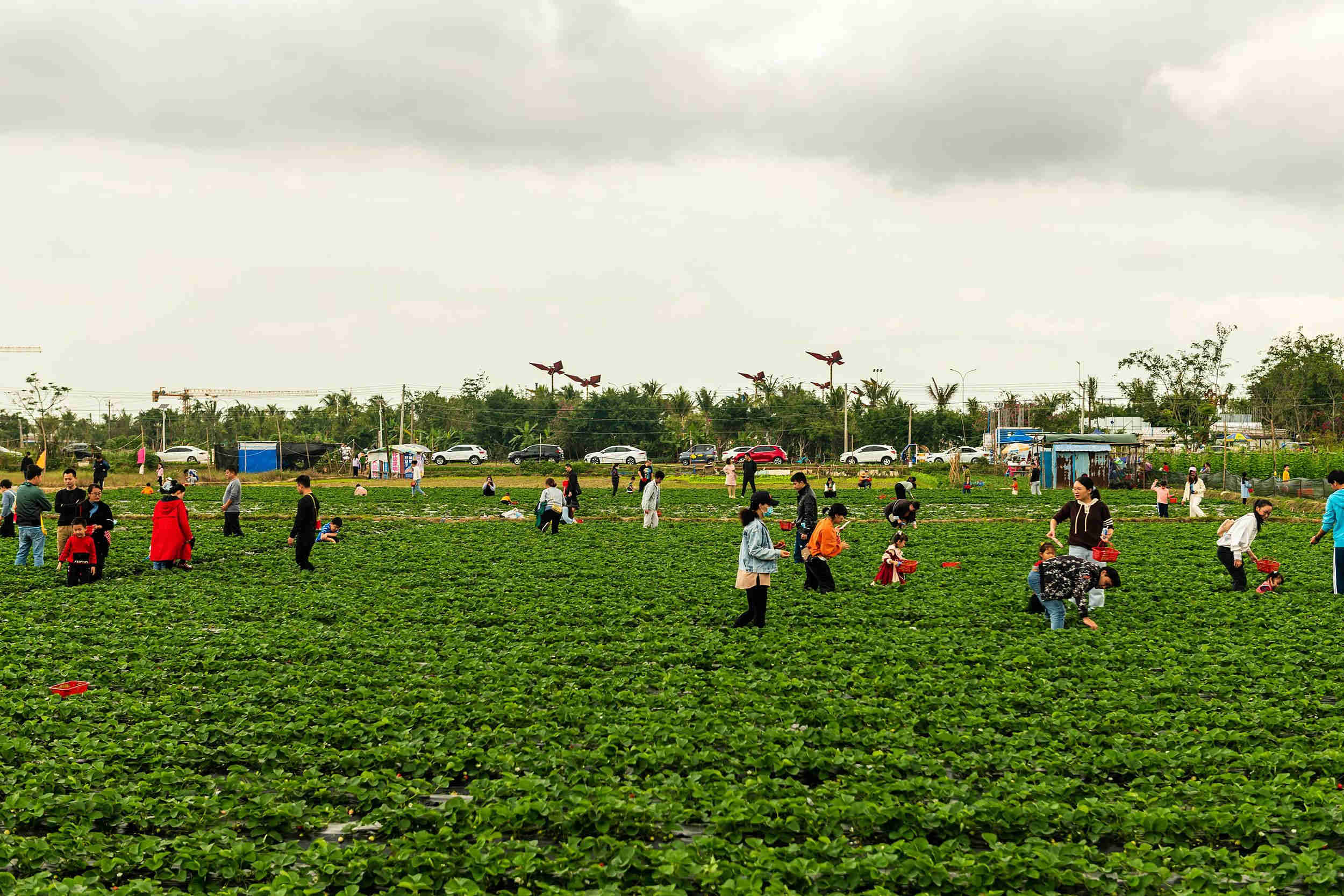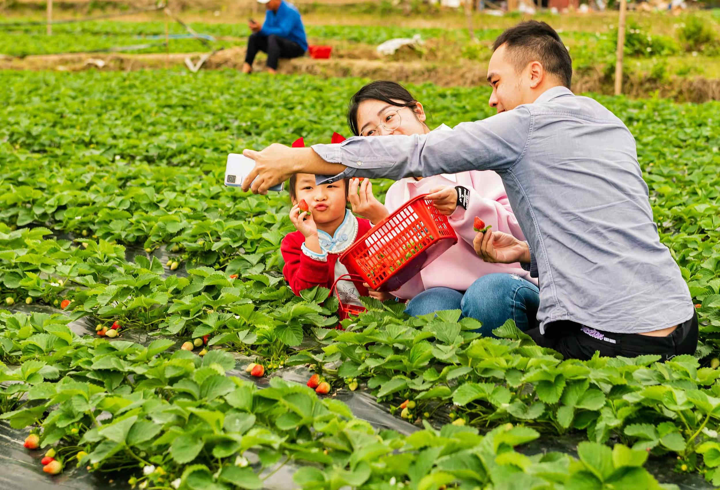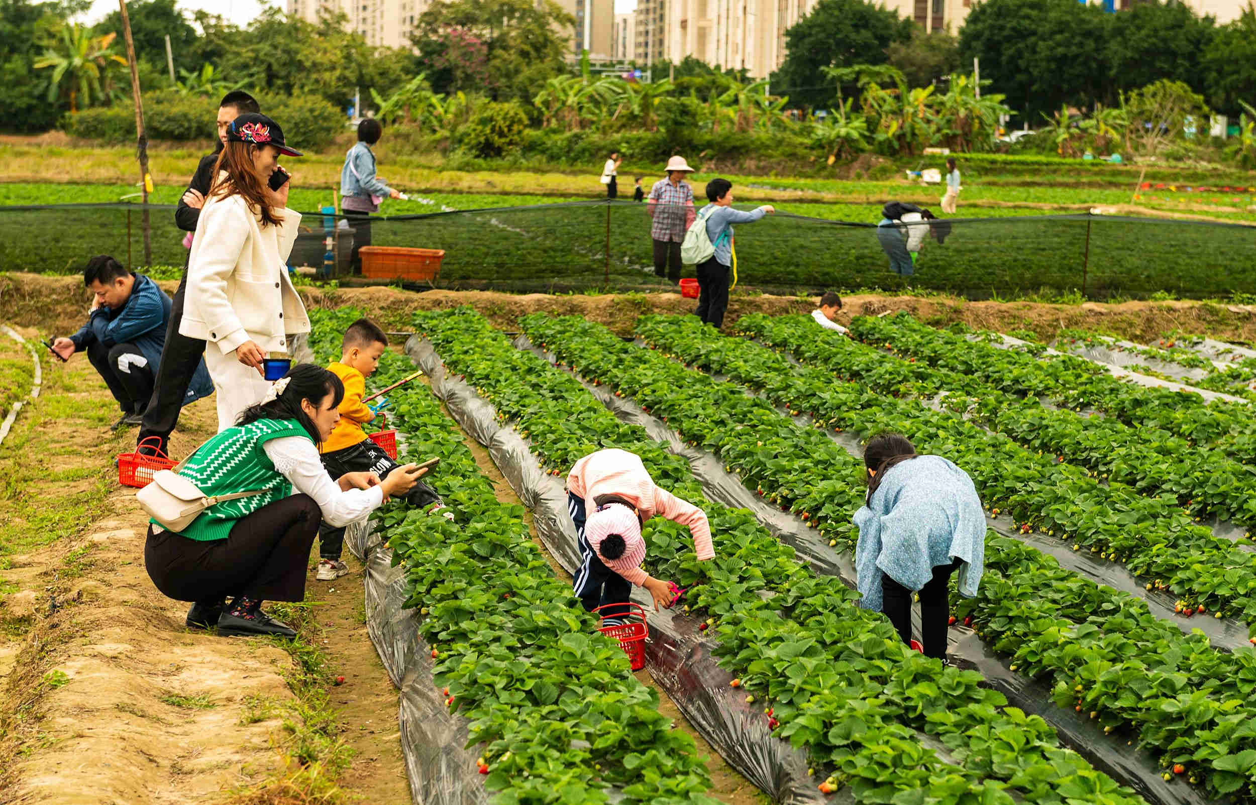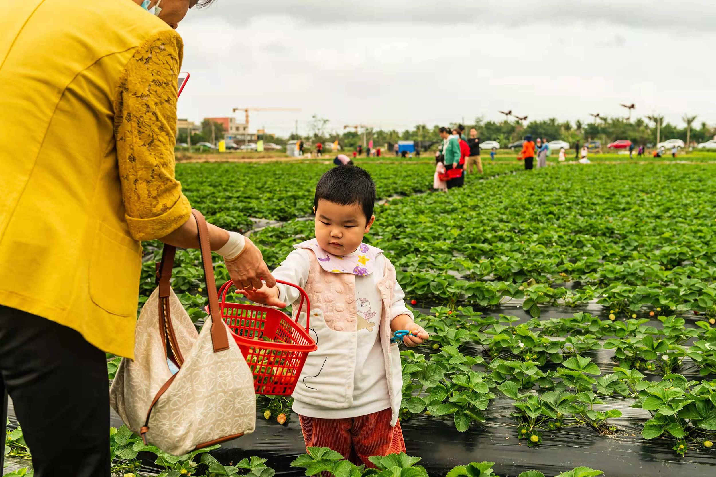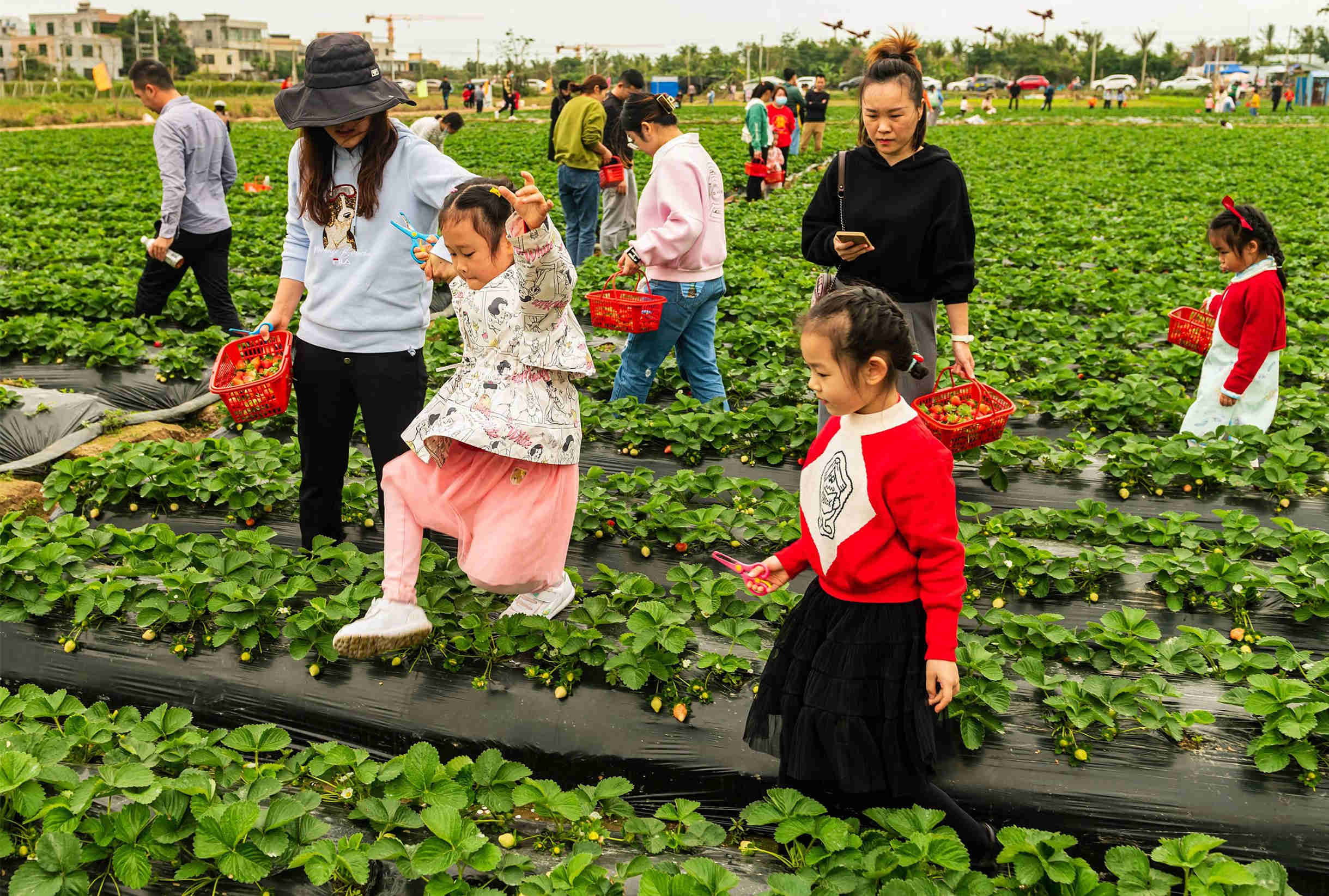 2022年1月9日,海口不少家庭专门到海口南渡江畔琼山大道附近的一农庄踏青采摘草莓。