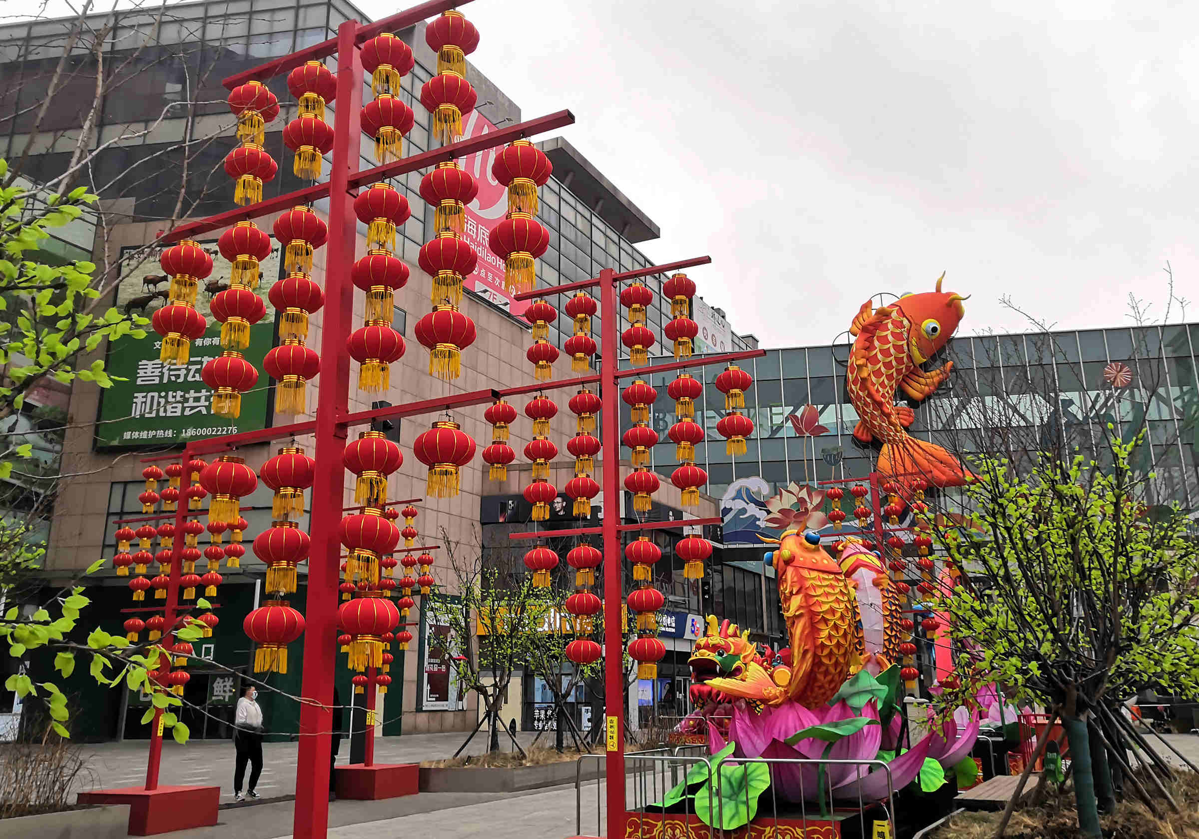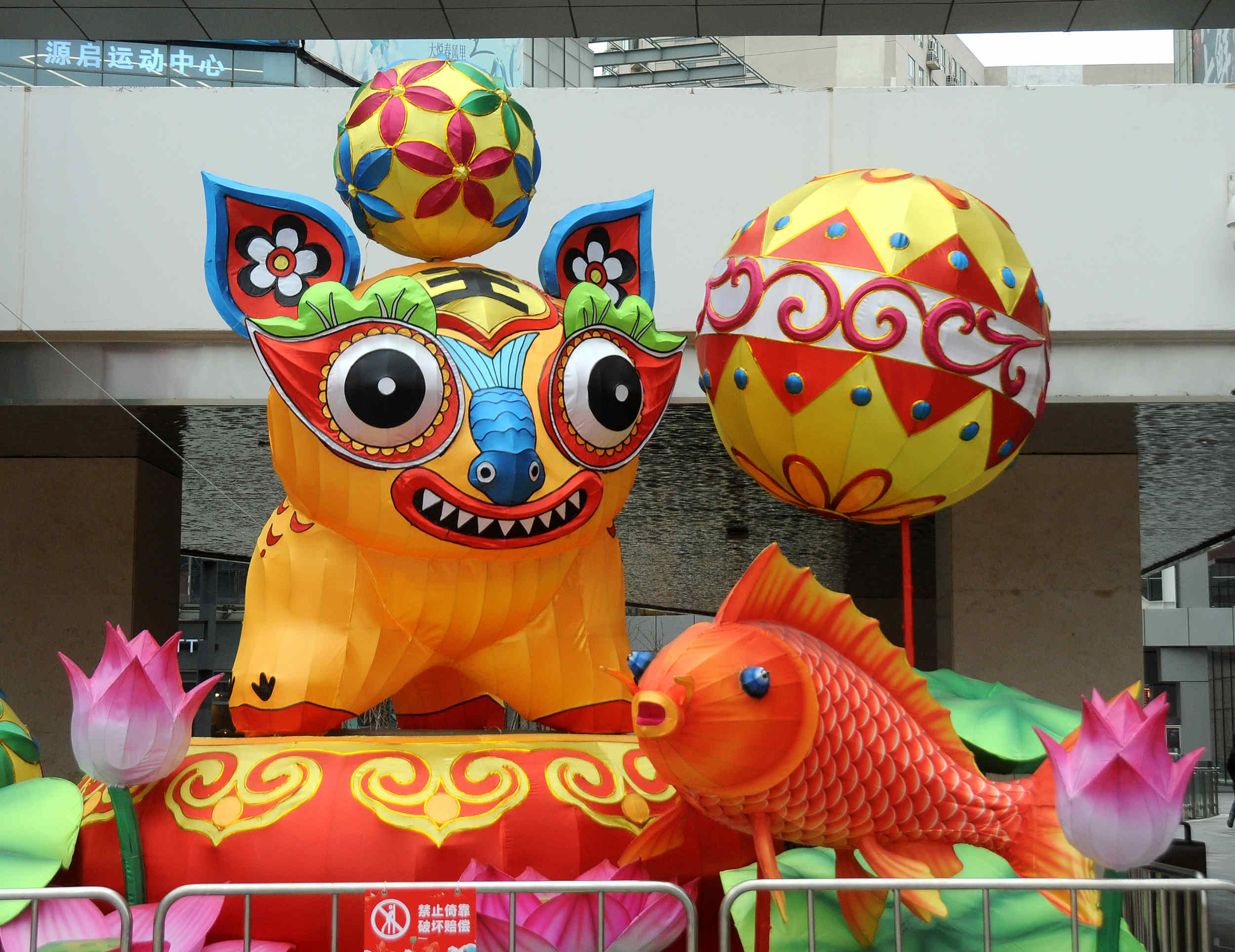 据悉,本届灯会共有1500平方米的灯光装置,9组花灯,以及13米高的巨型锦鲤等。
