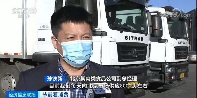 北京某肉类食品公司副总经理 孙铁新:目前我们每天向北京市场供应8000头左右,预计到腊月十五以后,每天将向北京市场供应10000头左右。