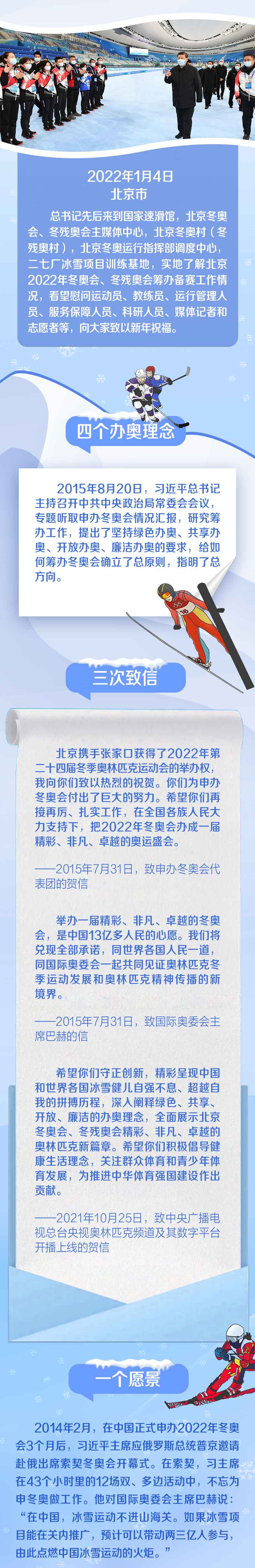 |联播+|“要坚定信心、振奋精神、再接再厉,全面落实简约、安全、精彩的办赛要求,抓紧抓好最后阶段各项赛事组织、赛会服务、指挥调度等准备工作,确保北京冬奥会、冬残奥会圆满成功。”2022年1月4日,习近平总书记在北京考察2022年冬奥会、冬残奥会筹办备赛工作。
