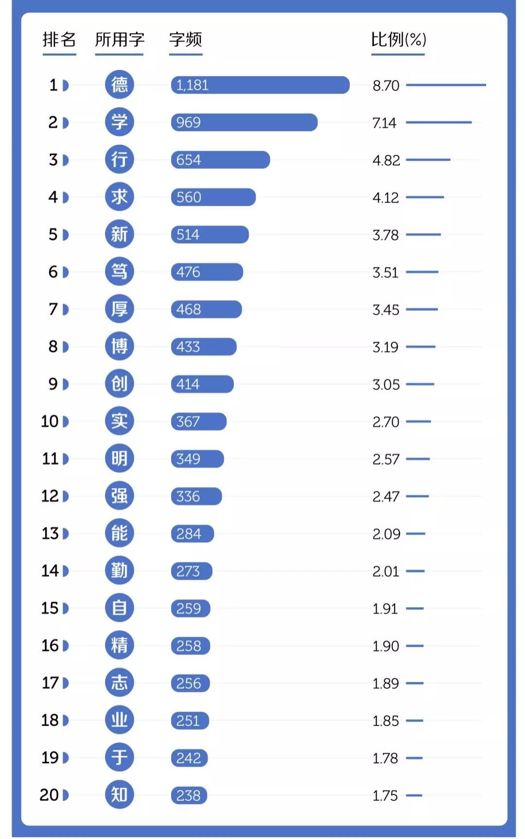中国大学的校训,最爱使用哪些字?