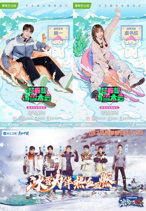如《超有趣滑雪大会》邀请黄明昊、林一、王彦霖、虞书欣、张继科作为“超滑家族”,与其他明星、运动员展开比赛。《冰雪正当燃》中,李晨、吴奇隆、吴尊、姜潮及于洋担任“冰雪经理人”,节目的领队成员则由冰雪项目运动员组成,并让“冬奥小白”观看了花样滑冰、冰壶等项目,以普及冰雪运动相关知识。
