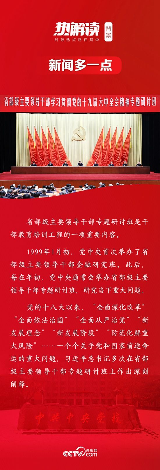 热解读1月11日,全党迎来“开年第一课”。以“学习贯彻党的十九届六中全会精神”为主题的省部级主要领导干部研讨班在中央党校(国家行政学院)开班。习近平总书记在开班式上发表重要讲话。