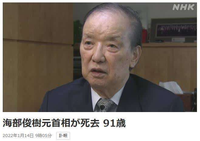 中新网1月14日电 综合消息,1月9日,日本前首相海部俊树去世,享年91岁。他在卸任首相后多次到访中国,并曾在南京就南京大屠杀“向南京人民表示深深的道歉”。