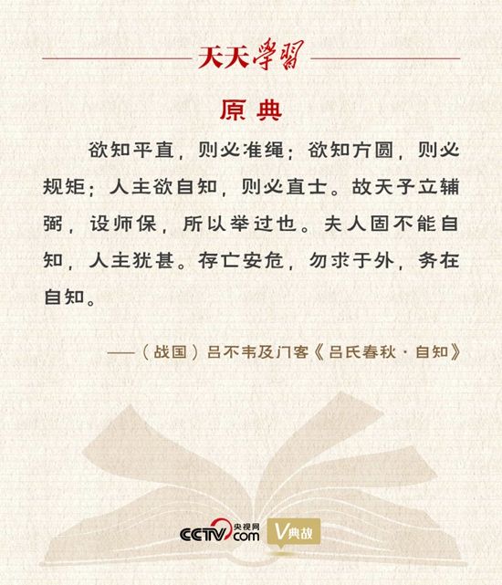 “欲知平直,则必准绳;欲知方圆,则必规矩;人主欲自知,则必直士”出自《吕氏春秋·自知》。意思是,要想知道平直与否,就必须借助水准墨线;要想知道方圆与否,就必须借助圆规矩尺;君主要想知道自己的过失,就必须任用直谏之士。前两句采用比兴手法,以引出第三句所要讨论的话题——“自知”。“直士”就是使君主自知的“准绳”和“规矩”。
