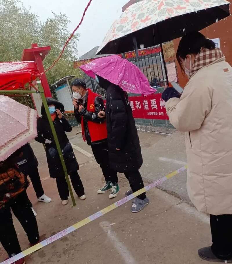 1月4日,雪满禹州,纷飞的雪花似乎在诉说这座城市的遭遇,政府立刻将梁北镇和夏都办事处调整为高风险,随即开展第二轮核酸检测,我们看到百岁老人拄拐杖雪夜排队做核酸检测;也看到在医护人员眼睫毛上落下最纯净的雪花;亦听闻白衣天使顶风雪,爬陡坡,不眠不休为高风险地区上门做核酸检测,只为坚守无遗漏全员核酸检测的原则。凛冽的寒风下,雪色暗淡,一边是肆意无情的疫情,一边是雪夜中最炙热的中国心,这澎湃的力量可度过寒冬,照夜色,破新冠,我们坚信,禹州一定行!