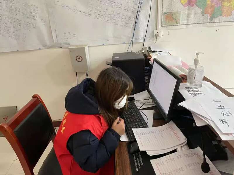 今天我们志愿者的任务是挨家挨户登记信息,核实在家人数,制定好十员混检名单表。下过雪的路并不是那么好走,雪化之后原本的土路有点泥泞,早上八点钟也没有太阳。当我们一家一户敲响门,村民们并没有被打扰得不配合,每家每户都积极拿出户口本登记。