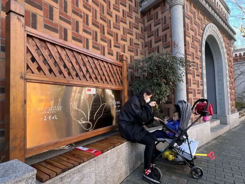 红砖灰瓦的历史建筑旁游人如织