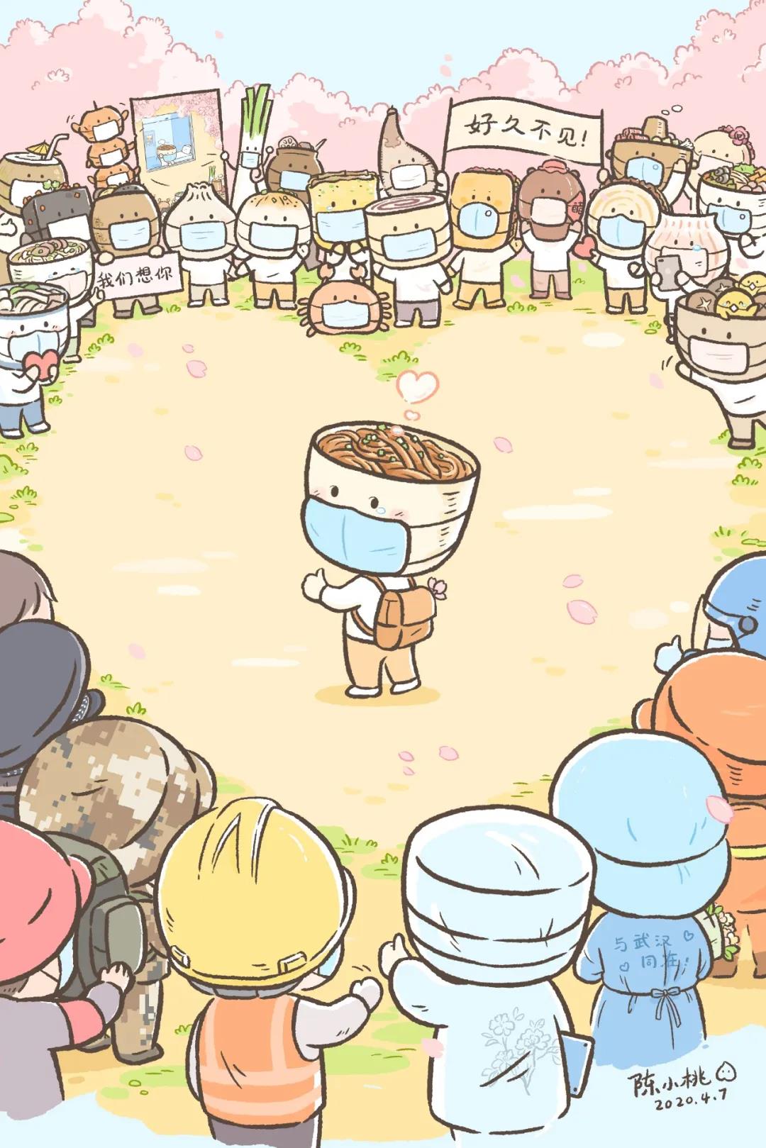 ▲“陈小桃momo”1月30日发表漫画“热干面加油”。