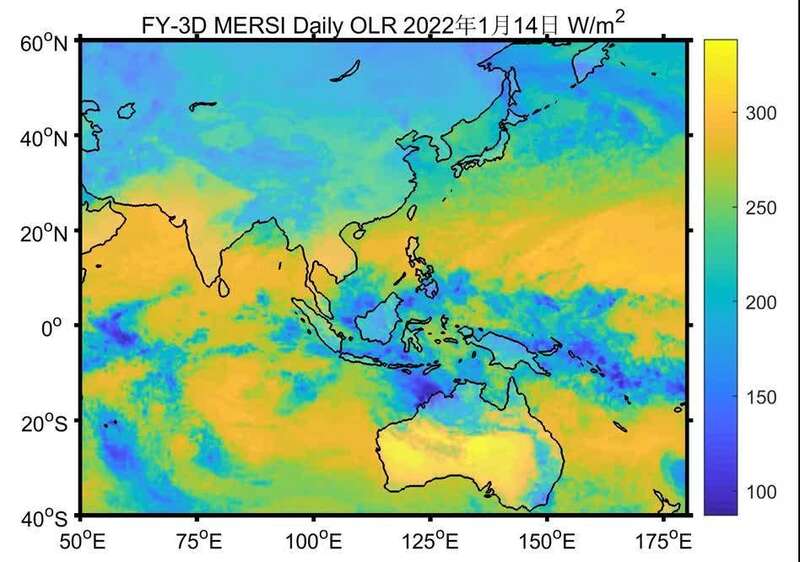 位于南太平洋岛国汤加洪阿哈阿帕伊岛(Hunga Tonga-Hunga Ha'apai)的火山(175.38°W, 20.57°S)于2022年1月15日猛烈喷发,此次可能是30年来规模最大的一次火山爆发。