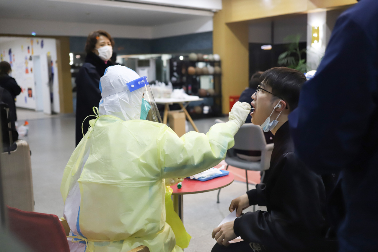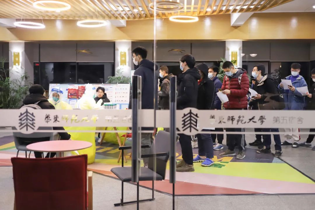 寒假以来,上海不少地方在接受疫情防控排查协查。因疫情排查需要,1月14日起,华东师范大学普陀校区第五宿舍实行2天48小时封闭管理,533名寒假留校学生和宿管人员当晚接受核酸检测等排查工作。