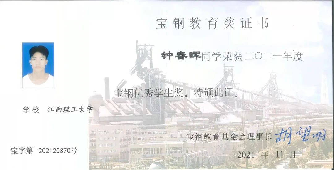 宝钢奖学金是他实至名归的荣誉
