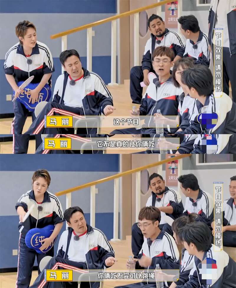 马丽在一旁提醒两个综艺新人,不能太“较真”