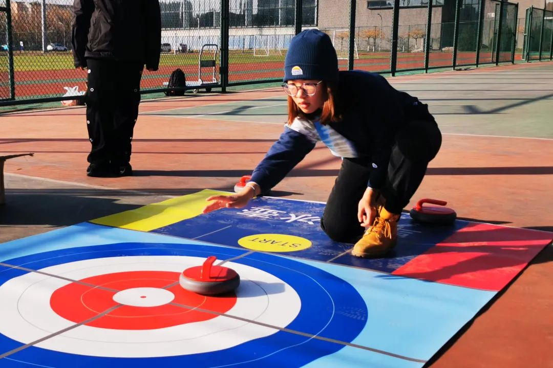 本次活动形式丰富,有旱地冰壶、冰蹴球、冰球射门三个项目,极具趣味性、学习性、创造性与参与性。这些项目规则程式简单,动作技术易学,充分调动了同学们的热情,也让同学们更能感受到冬奥运动之美。