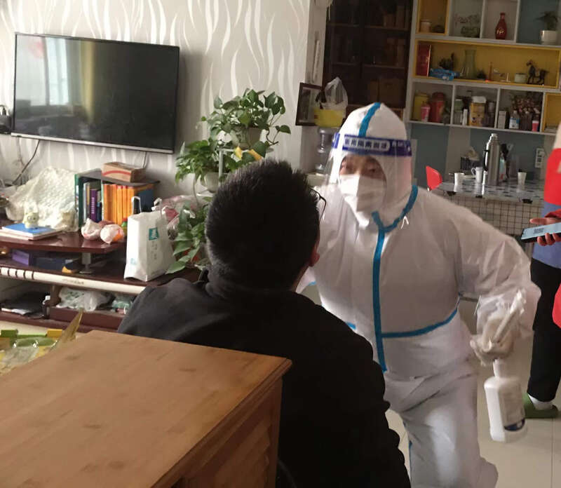 1月18日上午,马海龙和同事在汤阴县核酸检测采样工作。