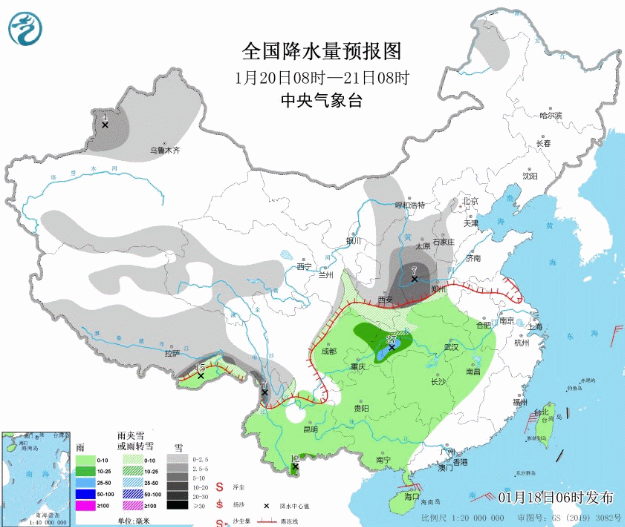 20日起我国天气形势迎来转折,中东部将经历大范围雨雪过程。目前正值春运期间,北方要防范降雪导致的路面积雪结冰,南方地区除小心道路湿滑还要警惕雨雾天气下低能见度的影响。大家出行前请及时关注天气预报预警信息,遭遇雨雪天气,尽量减少自驾出行,选择公共交通。