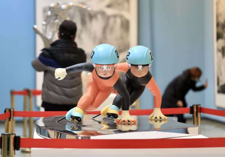 雕塑家孙晓晨创作的《冰雪盛宴》。新创作的冬奥主题作品,涵盖国画、油画、版画、雕塑、书法、篆刻等各个艺术门类。