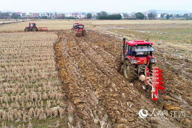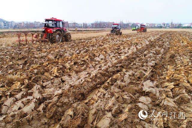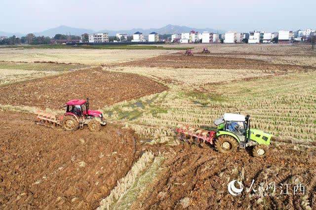 人民网南昌1月21日电(毛思远)1月19日,江西省抚州市东乡区小璜镇小璜村的农田里,旋转犁正在对农田进行机械化作业。随着气温回升,江西省抚州市东乡区各地纷纷拉开春耕备耕序幕,田间地头呈现出一派忙碌景象。