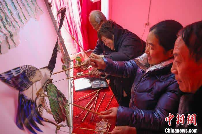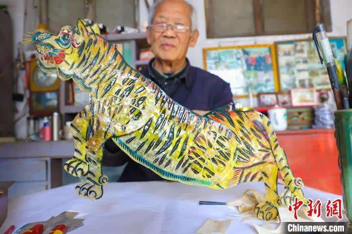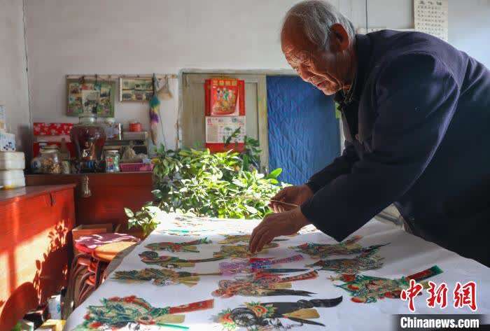 非遗传承人李树稳在制作“虎虎雄风”皮影。 汪洋 摄