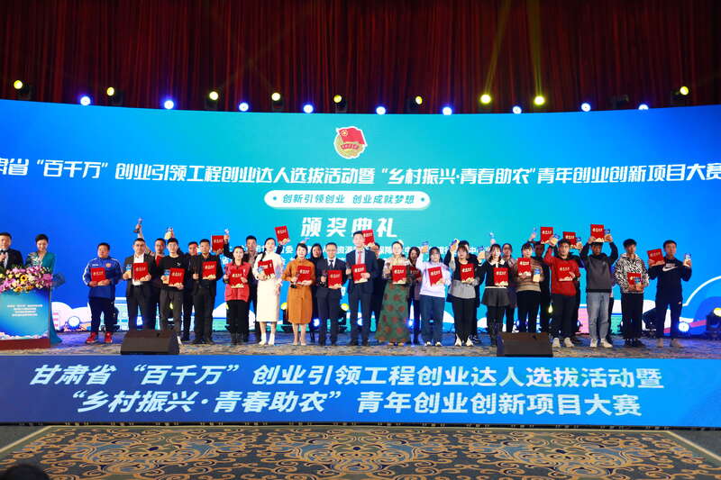 中国青年报客户端兰州1月23日电(中青报·中青网记者 王豪)今天下午,由共青团甘肃省委、甘肃省人力资源和社会保障厅、中国人民银行兰州中心支行联合主办的甘肃省“百千万”创业引领工程创业达人选拔活动暨“乡村振兴·青春助农”青年创业创新项目大赛颁奖典礼在兰州举办。