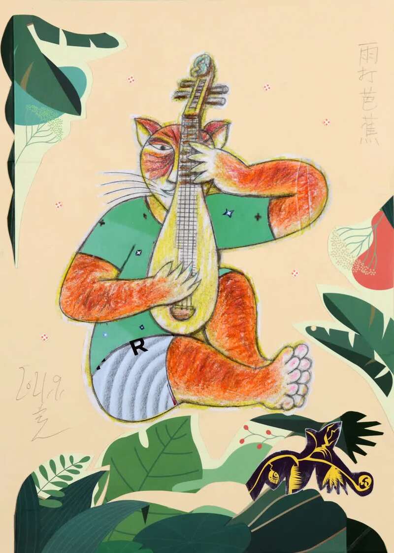 《雨打芭蕉》 纸本拼贴 36×50cm 2021