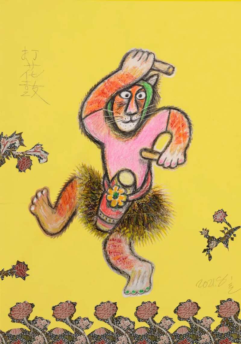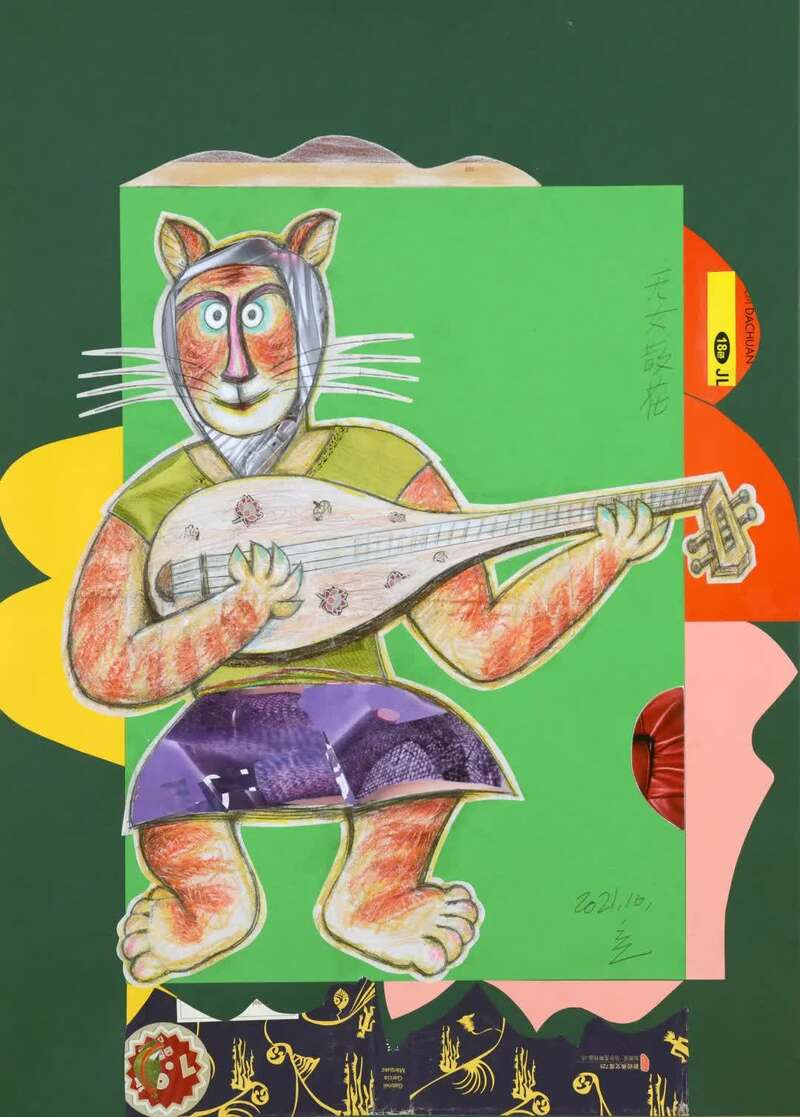 丁立人 《打花鼓 》纸本拼贴 36×50cm 2021