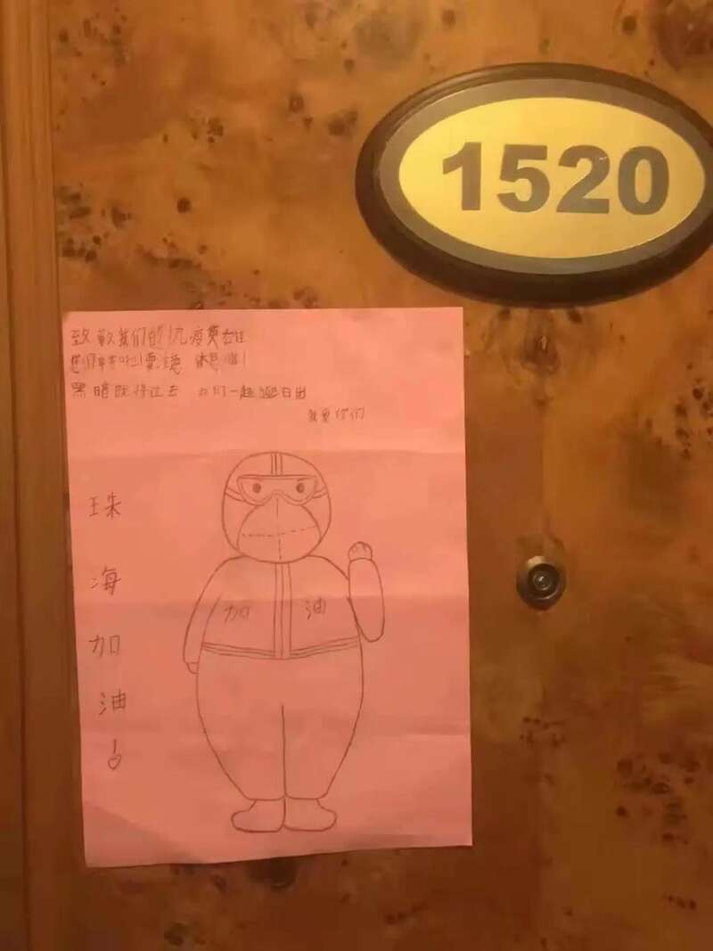 给隔离酒店增添了温暖。