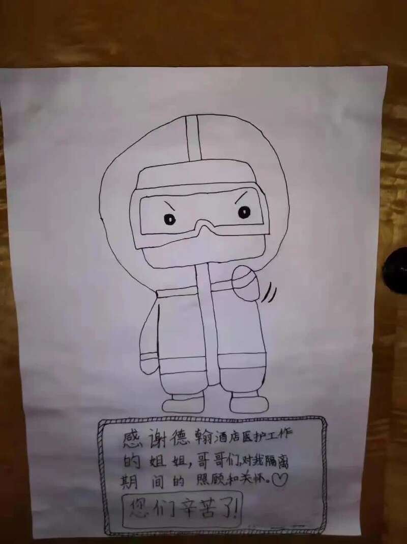 “画是由孩子主动画的,孩子看到大家这么辛苦,也想做点什么表达感谢。”陈同学的妈妈肖女士表示,工作人员的关怀无微不至,如今孩子积极而勇敢。