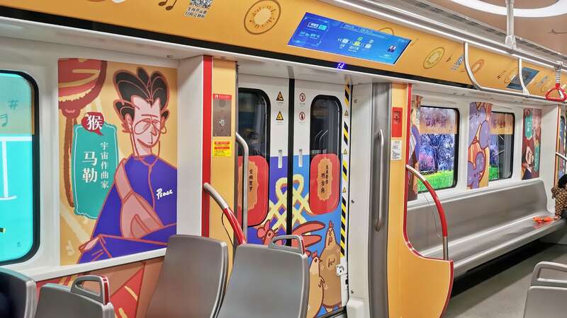 记者在地铁上看到,专列的视觉设计以中国十二生肖为创作主线,挖掘12名对应生肖的世界著名古典音乐家、作曲家,形成跨时空、接地气、富有中国韵味的文化对碰与趣味“穿越”。别出心裁的设计思路将交响乐艺术与春节传统文化巧妙融合,创造出轻松接地气、高雅有内涵的文化体验。