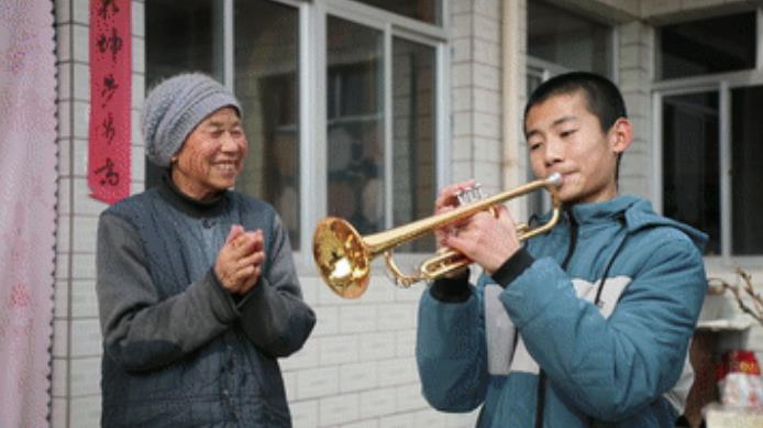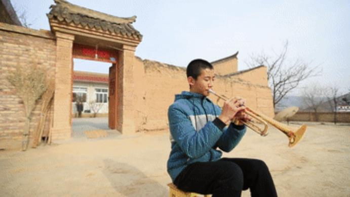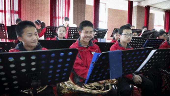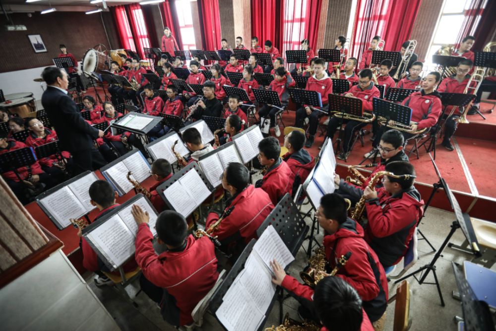 1月19日,在会宁县会师中学排练厅,交响管乐团学生在排练乐曲(新华社记者马希平摄)