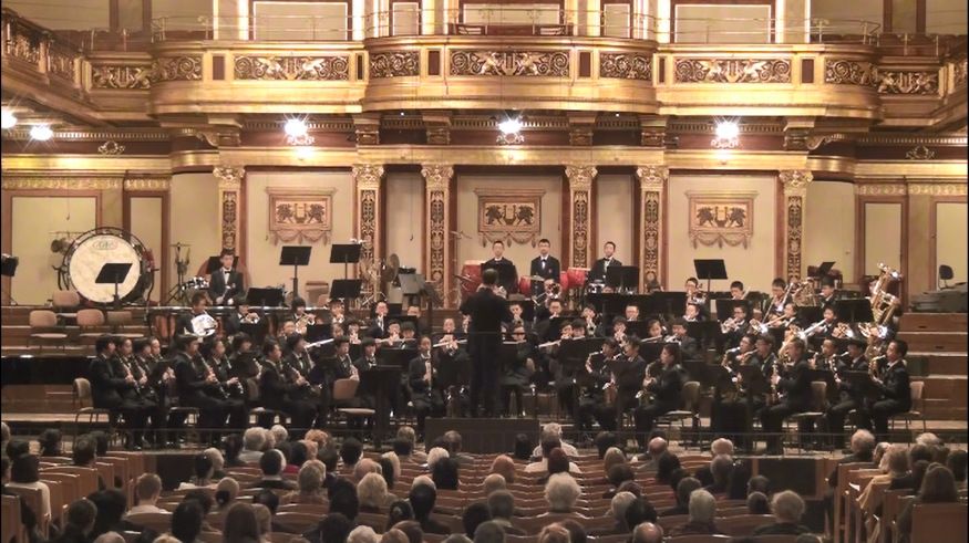 2013年,会师中学第一届乐团班的孩子们在奥地利维也纳金色大厅演出(会师中学供图)。