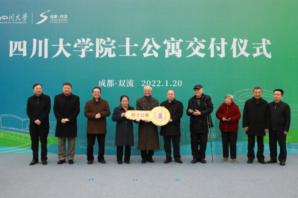 1月20日,由双流区为我校建设的四川大学院士公寓交付仪式举行。校党委书记王建国、校长李言荣;双流区委书记鲜荣生,区委副书记、区长杨钒;高洁院士、张兴栋院士、王琪院士、游志胜杰出教授、曹顺庆杰出教授、钟本和杰出教授、霍巍杰出教授;副校长侯太平、副校长张林、校党委副书记郭勇,及双方相关单位负责人参加交付仪式。