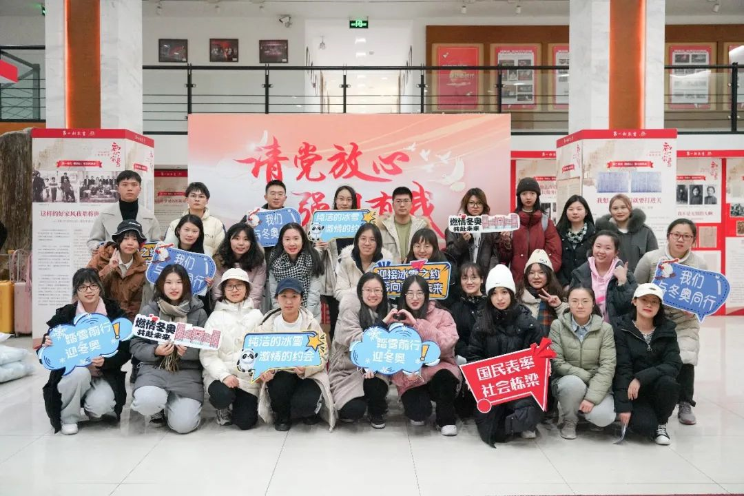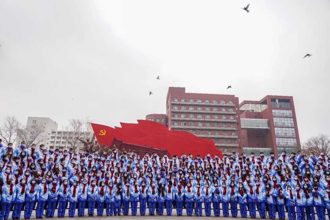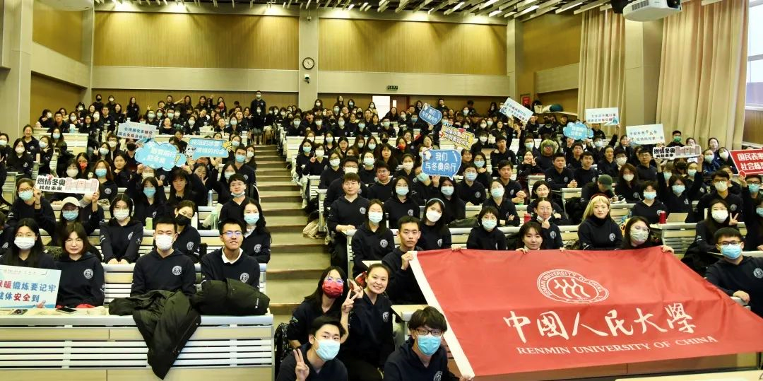 全体师生高呼“相约冬奥,人大加油”的响亮口号,在北京冬奥会主题歌曲《一起向未来》的旋律中合影留念。