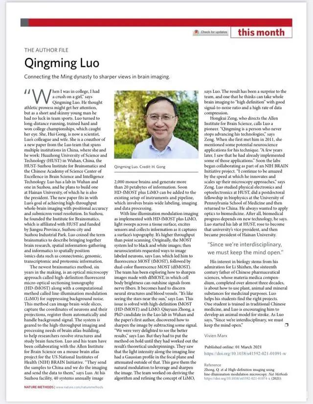 骆清铭院士团队基于线照明调制光学层析成像技术,是我国在全脑光学高清成像领域的新突破。